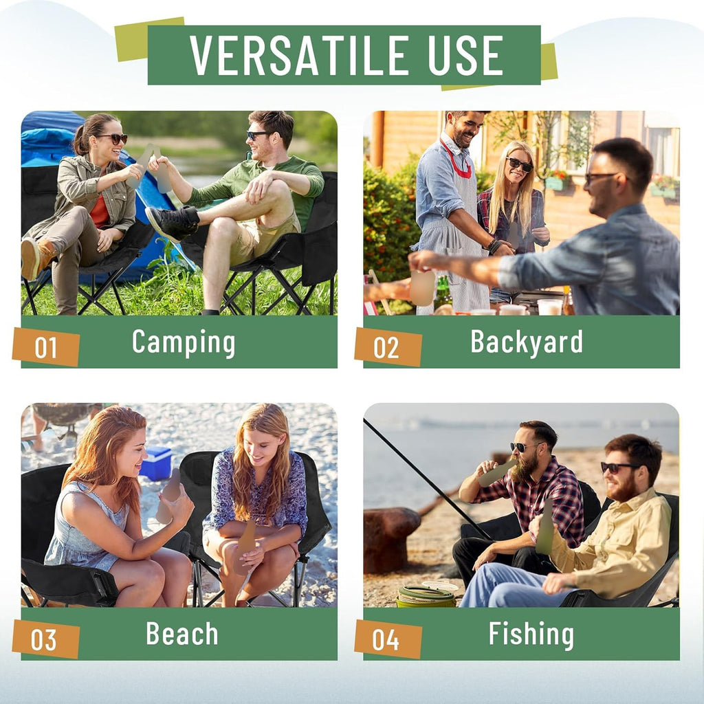 راحة عالية: مقعد واسع مع مسند ظهر داعم يوفر راحة ممتازة أثناء التخييم أو الاسترخاء في الخارج.