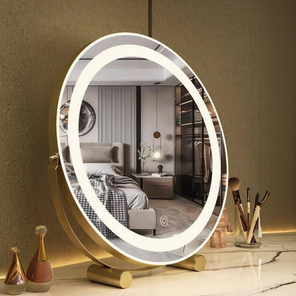 Round LED Makeup Mirror with Soft Light, Touch Control Vanity Mirror for Dressing Table & Bedroom Decor