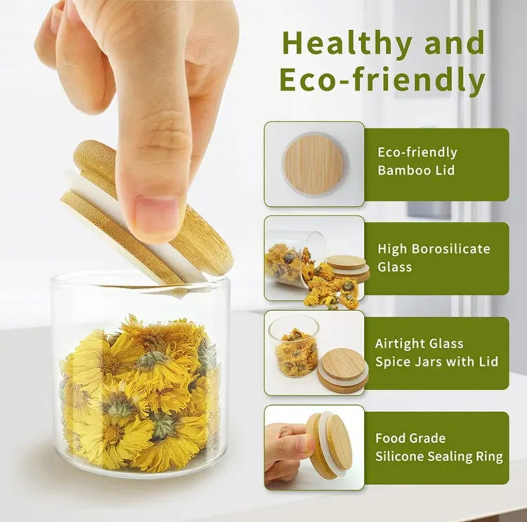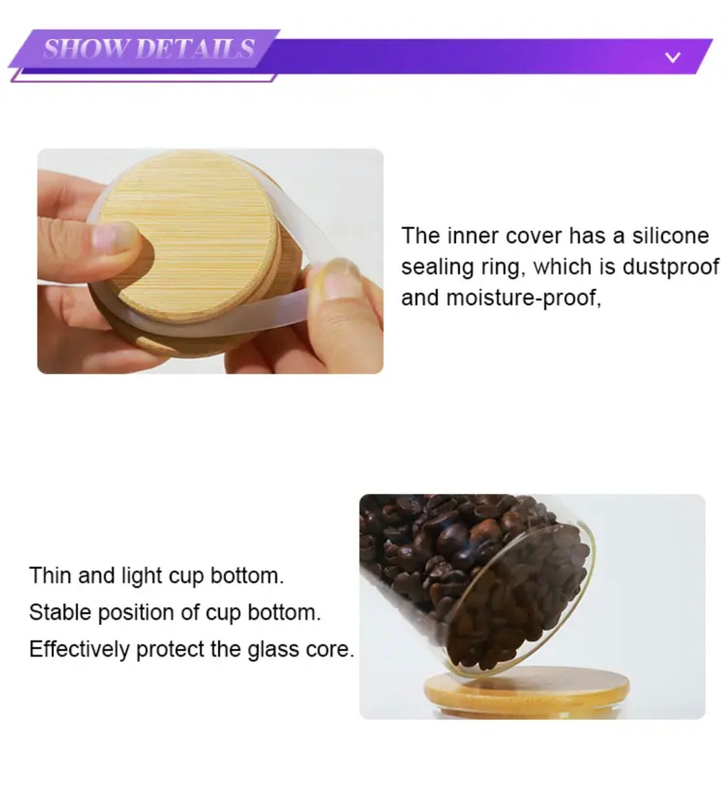 Material: High Borosilicate Glass + Natural Bamboo Lid + Silicone Seal