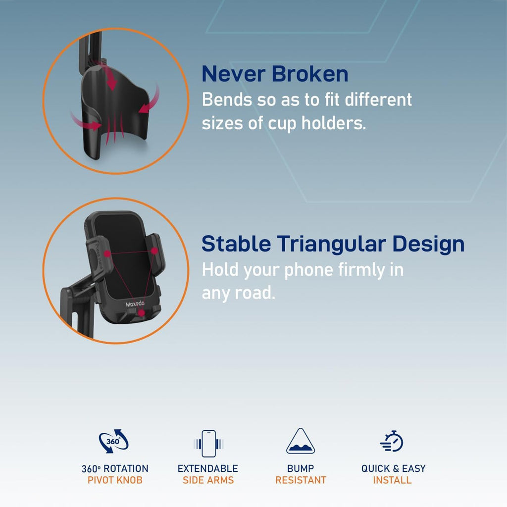Cup Holder Base Design: Fits securely in round & rectangular cup holders
